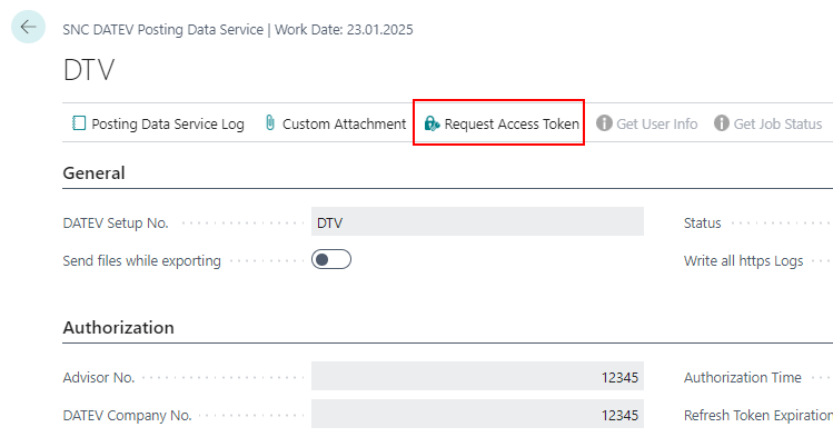 - Then select Request Access Token in the menu of the SIEVERS DATEV Buchungsdatenservice setup.