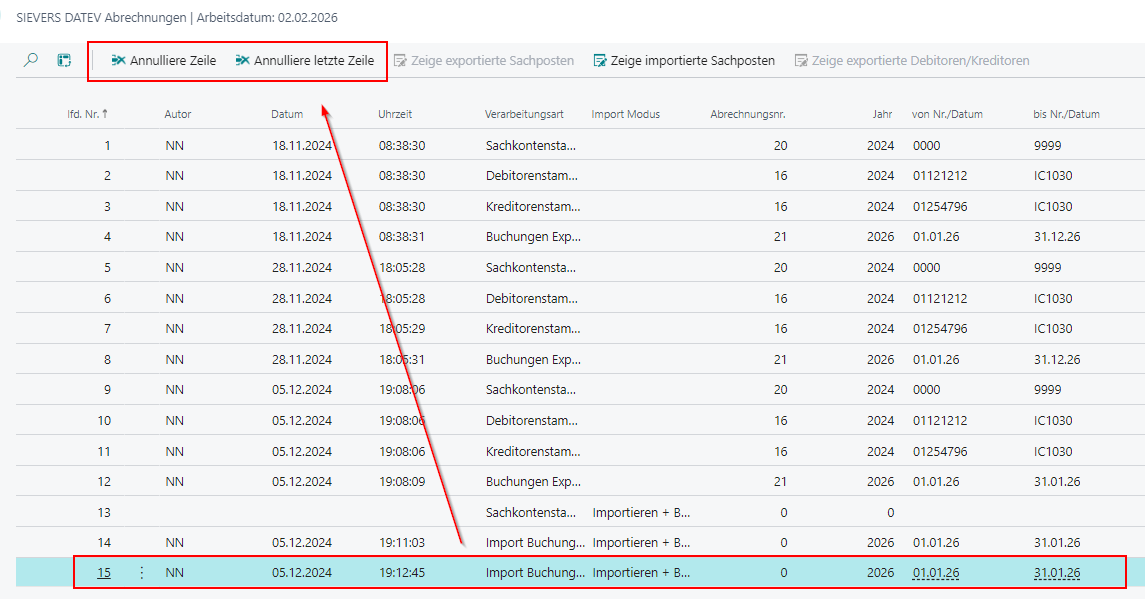Die Annullierung eines Imports erfolgt, wie bei den Exporten, über die SIEVERS DATEV Abrechnungen.
