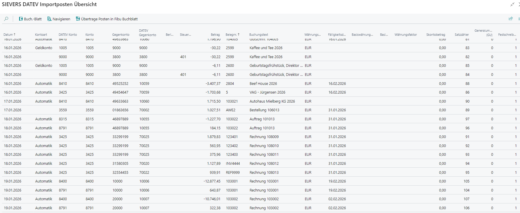 SIEVERS DATEV Importposten Übersicht