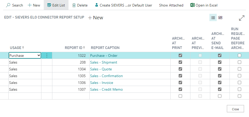 In the next step, set up the reports to be archived. Open the table with Setup Reports.