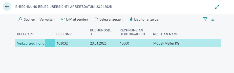 On this list, you can view the export documents that have been created. You can also send an e-mail with the document and access the linked customer.
