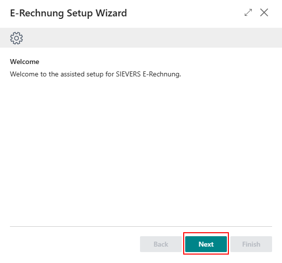 You start the setup process of the App SIEVERS E-Rechnung by opening the page E-Rechnung Setup.