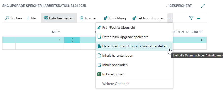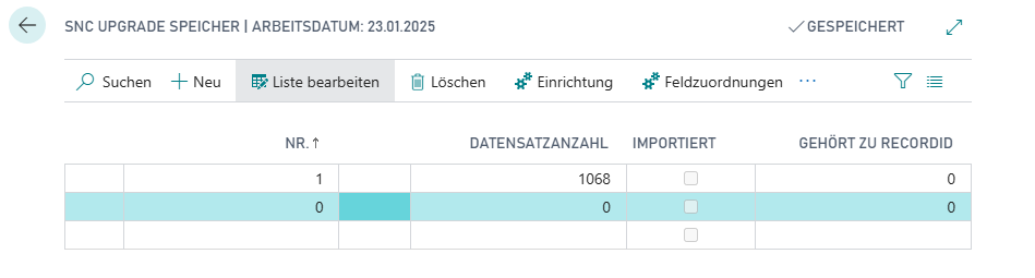 - Anschließend werden die gefundenen Datensätze in der Upgrade Speicher-Tabelle angezeigt.