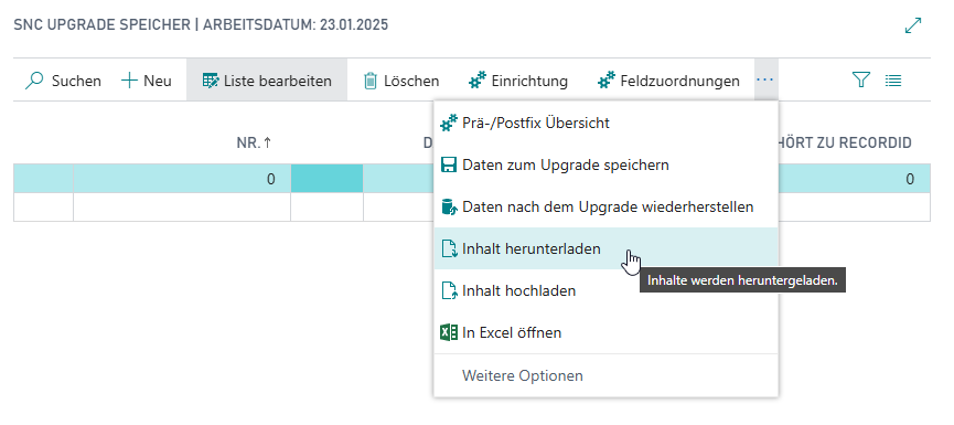 - Diese Daten laden Sie jetzt als json via Inhalt herunterladen herunter. Das dient der Absicherung, falls beim Upgrade-Prozess etwas schief geht.