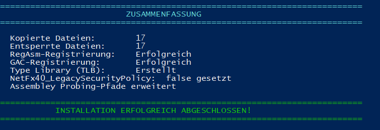 SourceFolder und TargetFolder müssen entsprechend auf ihr Setup abgeändert werden. Mit diesem Skript werden die Dateien aus dem Release Ordner an die richtigen Stellen gelegt und die ZUGFeRDDLL korrekt registriert.