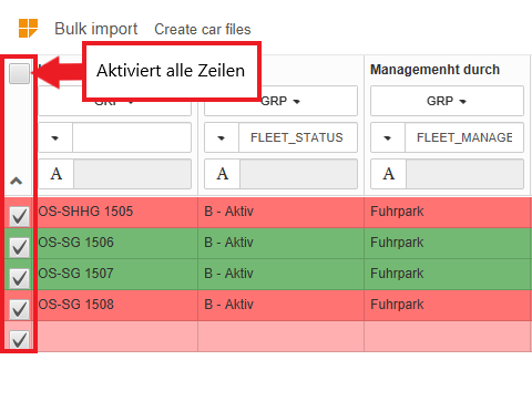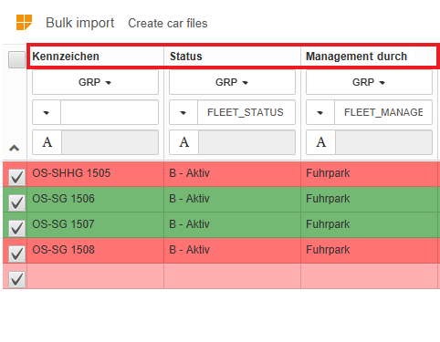 Falls Zeilen nicht importiert werden konnten, werden diese mit einer roten Hintergrundfarbe versehen. Diese entstehen z.B., wenn bestimmte Formatierungsrichtlinien nicht eingehalten wurden.
