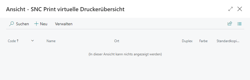 Bei on-prem-Systemen darf der Code eines virtuellen Druckers nicht mit dem Namen eines lokalen Druckers übereinstimmen. Wird ein solcher Namenskonflikt festgestellt, erscheint eine Fehlermeldung – sowohl bei der Anlage des virtuellen Druckers als auch beim Drucken oder beim Öffnen der Druckerverwaltung. Benennen Sie in diesem Fall den virtuellen Drucker um.
