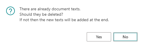 With Insert Document Texts you get to a selection of document texts available for this document. Whether a document text is available depends on the document and document text properties. For example, the posting data set and the customer should match.