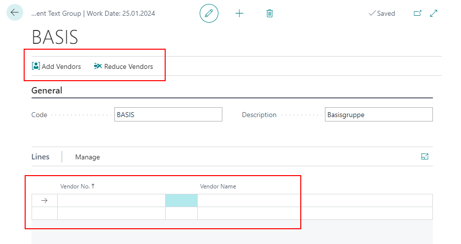 After you have given the groups a code and a description, you add vendors or customers. You have two options to do this: