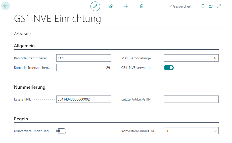 In den Firmendaten befindet sich zusätzlich zu den regulären Einrichtungsfeldern des Business Central-standards auch der Abschnitt SNC Trace. Hier finden Sie einige Felder vor, die für die Erzeugung von GS1 Codes für NVE notwendig sind: