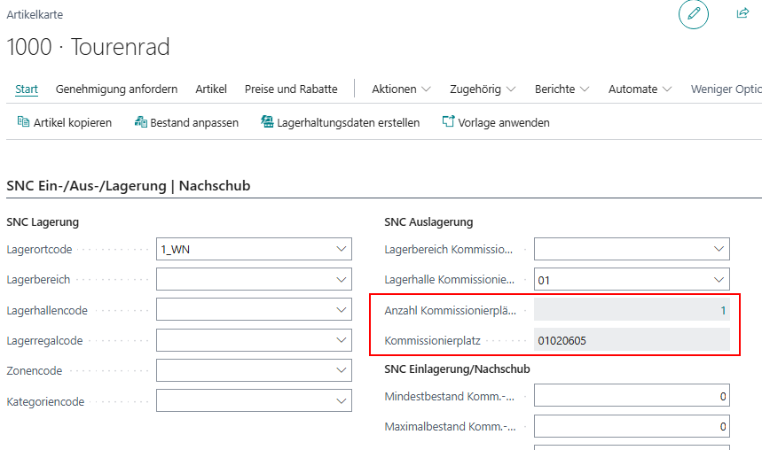 - Öffnen Sie Business Central und navigieren Sie zu der Seite SNCL Lagerhallenübersicht.