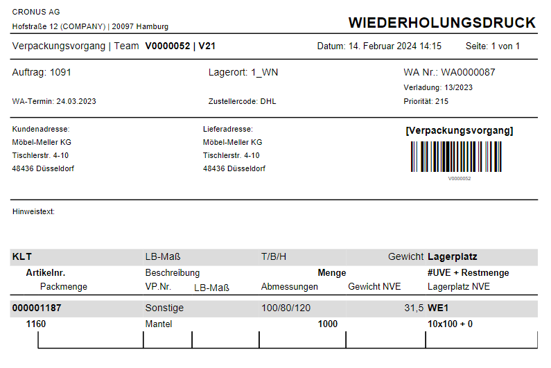 After printing, it can be folded and packed in a DIN A5 pocket and stuck next to the actual SSCC label.