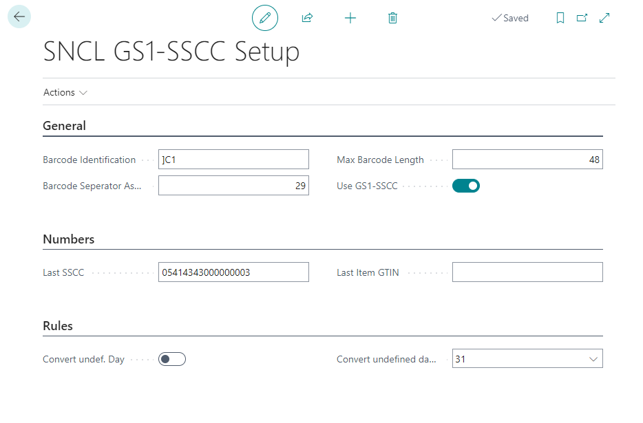 In addition to the regular setup fields of the Business Central standard, the company information also contains the SNC Trace section. Here you will find some fields that are necessary for generating GS1 codes for SSCC: