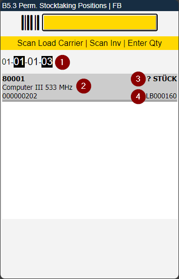 When you scan a storage place you see this screen: