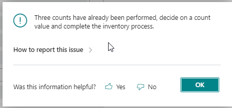 From now on, it is forbidden to create another count after the third count cycle. When you try to create a fourth count, this message will be displayed: