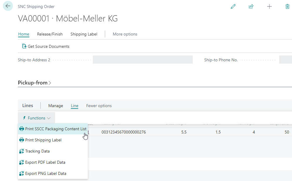 On the SNC Shipping Order you now have the option to print SSCC packaging content lists from the shipping order lines.