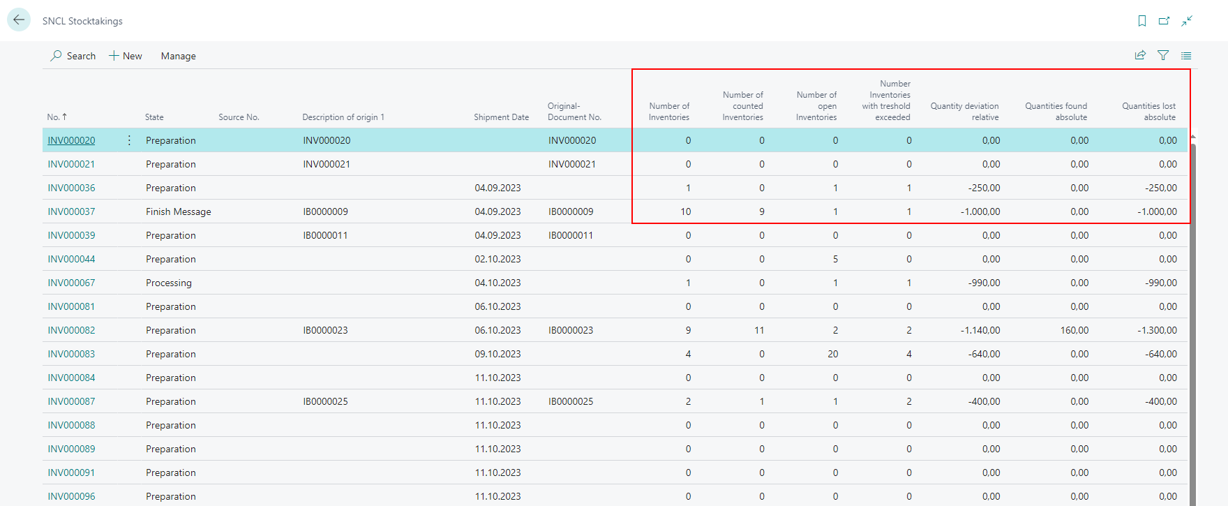 We have added the following fields to the SNCL Stocktakings list: