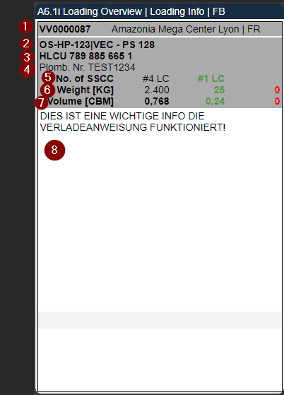- Left: Number of open SSCC in this loading process | Right: Already loaded SSCC in this loading process