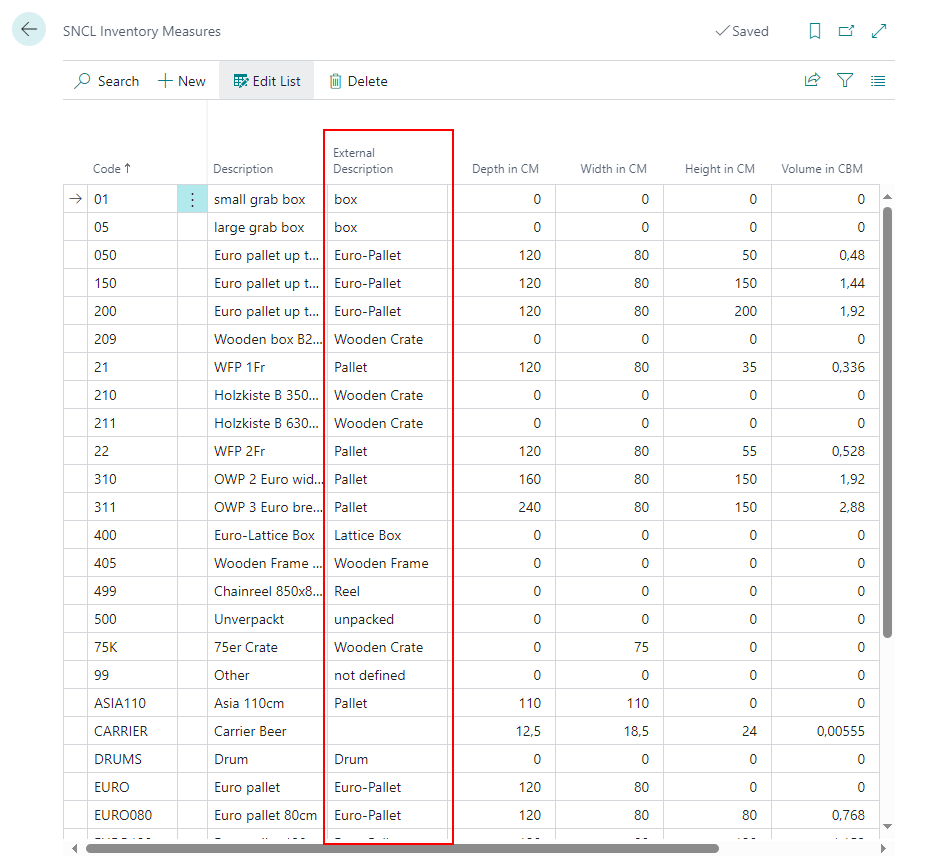 We added the new column External Description. This column is used for general summary descriptions of what the Load Carrier is. This information will be printed on the International Bill of Lading.
