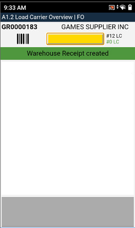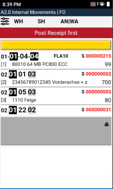 We have improved the feedback you receive when you try to scan a load carrier in A2 Internal Movements which belongs to an unposted warehouse receipt.