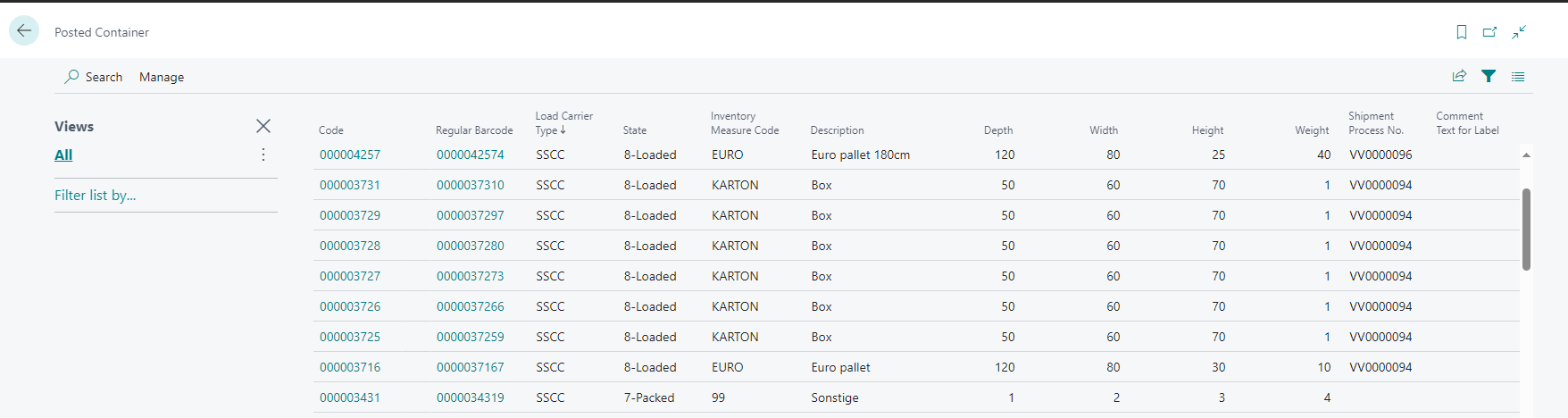 If a warehouse shipment has been posted, the SSCCs from the posted loading process are also archived. You can see these archived SSCCs in the Posted Load Carrier list.