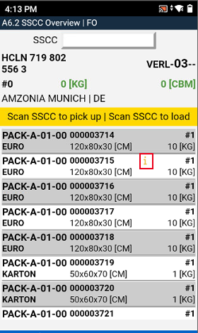 To give the loaders a quick overview of the SSCCs that have been picked up or prepared for loading, they can now open the "Collected SSCCs" via function menu A5. This is only possible after the loader has collected at least one SSCC via scanning.