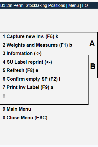 - If the user has accidentally accessed "New inventory" in B5.3 with F5 and presses ESC without having entered an inventory - the storage place has not yet been counted and the system still shows B5.3.