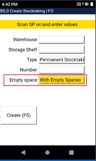 We have added a drop-down menu to select whether or not to include empty spaces in the stocktaking. The selection is equal to the one on Create Stocktaking by Storage Place in Business Central.