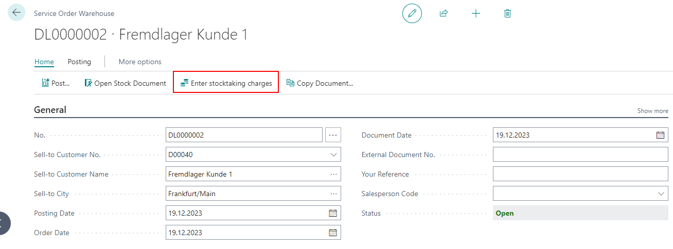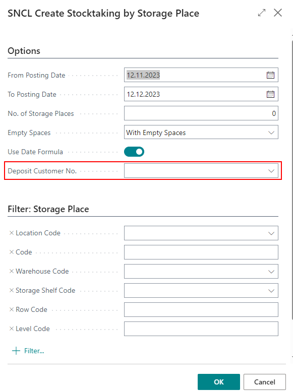 When you enter inventories in a stocktaking by item or storage place you can now filter those by Inbound Stock Post Customer No. in order to carry out a stocktaking for outside storage items. If items are loaded with a Inbound Stock Post Customer No. and are therefore external items, the customer no. is stored in the existing "Source No." field. This can no longer be edited.