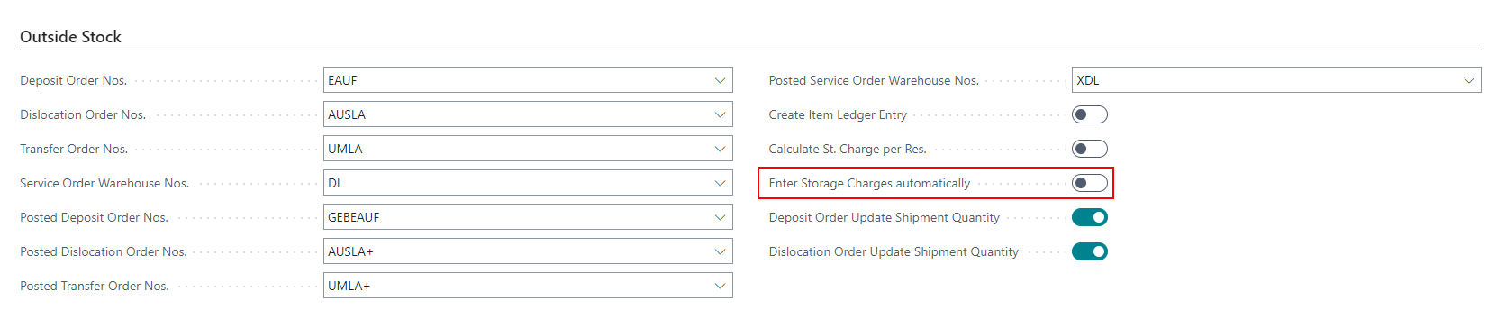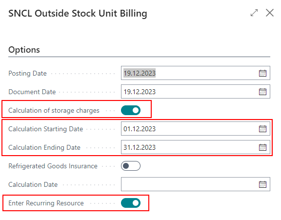 - Calculation of storage charges: true