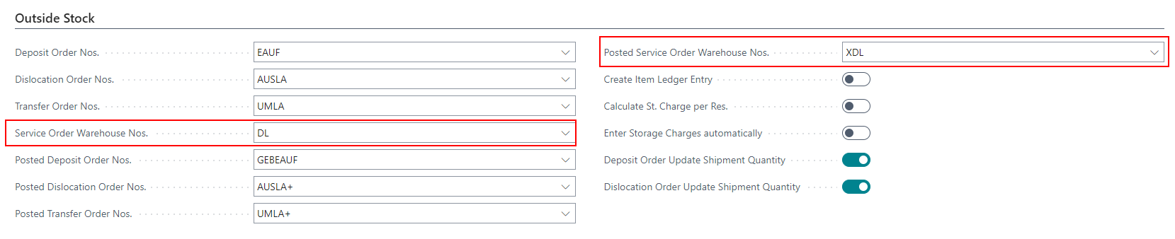 We have removed the fields Stocktaking Order Number and Posted Stocktaking Order Number and replaced them with the Service Order Warehouse Nos. and Posted Service Order Warehouse Nos..