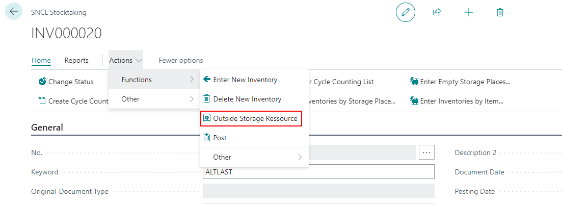- If an SNCL stocktaking was created for a stocktaking that does not belong to an outside storage customer, the "new inventory" function only adds items that do not belong to an outside storage customer