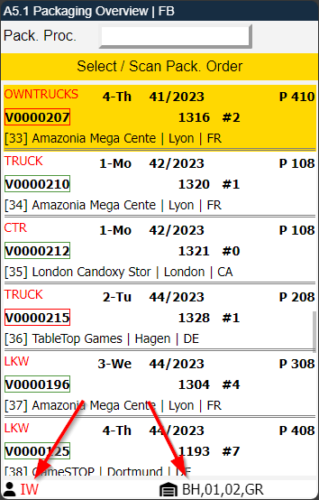 We have added a footer to the page A5.1 on the MDE. This footer contains the employee marking and a list of the warehouses with remaining pickings.
