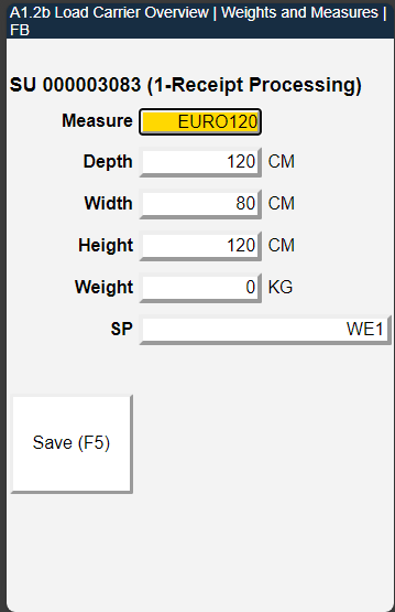 We have added the menu option to view the weights and measures for selected load carriers in A1.2 and A1.2o. Open it with F1 or via menu.