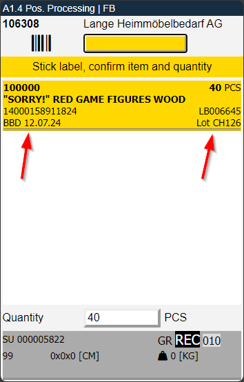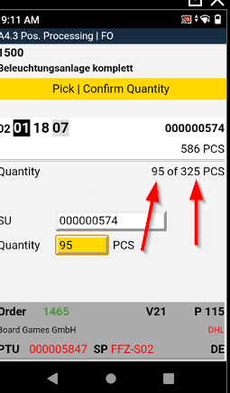 We have implemented a new quality of life feature in A4.3. Now the picker can see the remaining quantity he has to pick and the full quantity of the position.