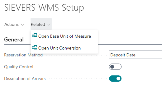 We have added the new setup pages Base Unit Of Measure List and Unit Conversion List, however, our customers had trouble finding those pages. We agreed that this could be solved better and have set up a link to the pages on the front page under Setup as well as in the WMS Setup page under "Related".