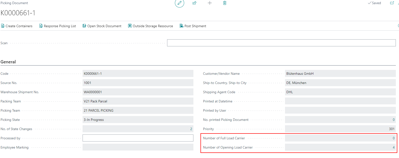 We have fixed a bug which caused the volume of the Load Carriers not to get entered correctly after creating them in the Warehouse Receipt. The volume of the load carrier is now correctly transferred on the basis of the packaging hierarchy.