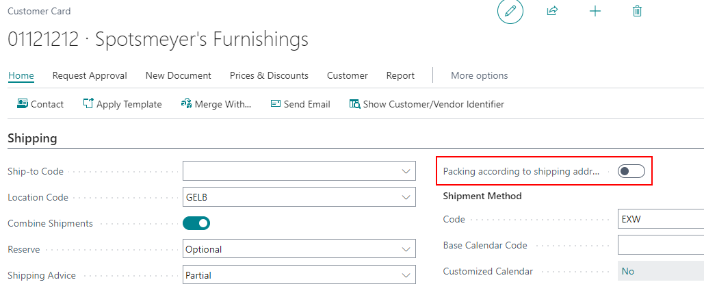 New Option 'Packing According to Shipping Address' in Customer and Vendor Card - Item 87027