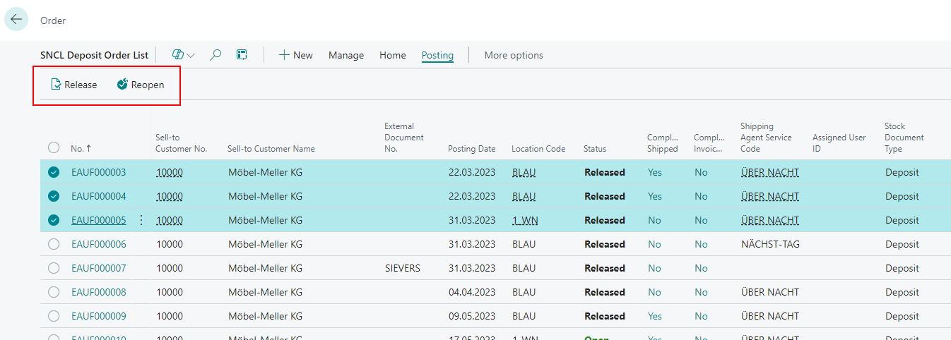 We have introduced actions for Inbound Stock Post orders and Outbound Stock Post orders that allow you to change the status directly from the list view. It is also possible to change the state of multiple selected orders at the same time.