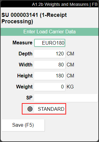We have implemented a new field on A1.2b Weights and Measures to enable mobile users to manually select an individual Inbound Stock Post strategy for load carriers. This feature is especially useful for items that are rarely received, allowing for better control over their storage direction.
