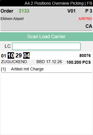 - If there are several inventory items with different sell-by dates or batches on the load carrier and the user can select them, the display shows *Div Lot and *Div Sell-by Date.