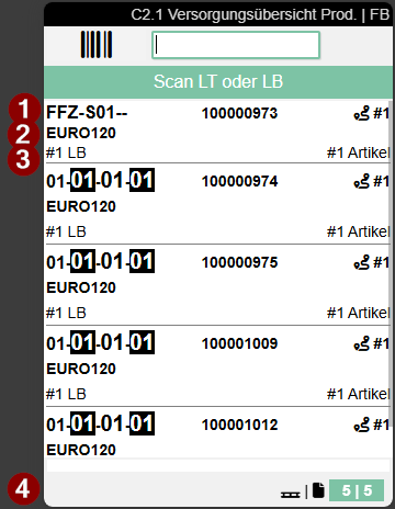 - Links: Chargennr. und MHD | Rechts: Stückzahl aus der Fahrbefehlszeile