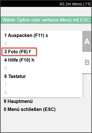- Das Foto kann mit F6 oder Menüpunkt B5 angezeigt werden