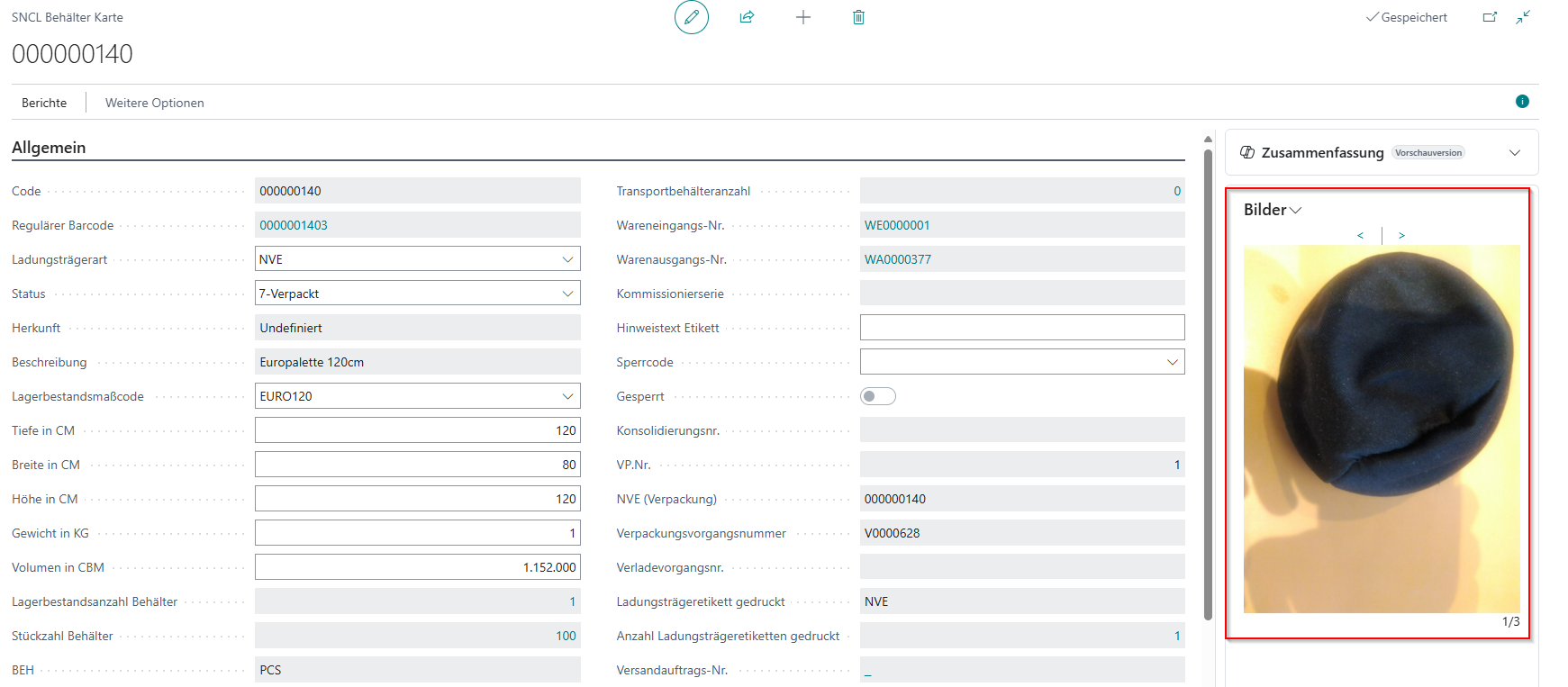 Fotos, die in A2 aufgenommen wurden, werden am Ladungsträger gespeichert. Sie können diese auf der rechten Seite in der Factbox einsehen: