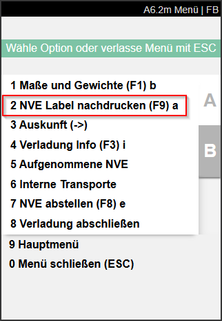 In Menü von A6.2 und A6.2o gibt es nun die Möglichkeit, das NVE-Label des ausgewählten Ladungsträgers nachzudrucken.