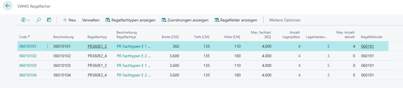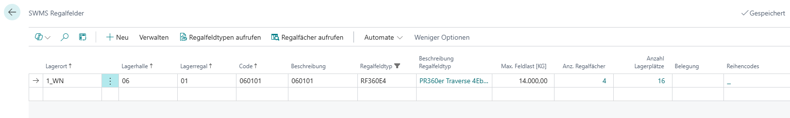 - Regalfeldcode: Eindeutiger Code des Regalfelds.