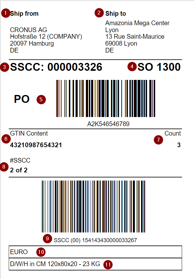::: Note If several items are packed into one SSCC, "DIVERSE" is displayed at 6. and "*" at 7. :::