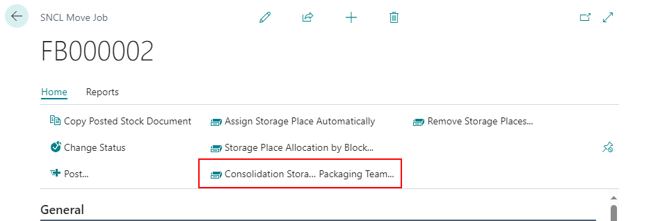 We have added a new button to the move order card: Consolidation Storage Place Allocation by Packaging Team. Clicking this button causes the consolidation storage place from the entered packaging team to be determined as the destination storage place. This function can only be used with PTU.
