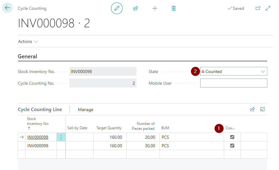 If all positions or lines were counted in SNCL cycle counting list, the status of the cycle counting list automatically jumps to counted.