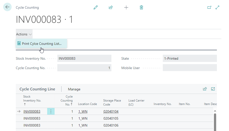 Now you can print the new report Cycle Counting List from the Cycle Counting page.